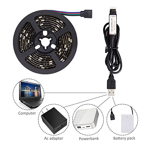 - BATTERY&USB OPERATED 2 in 1:This RGB LED strip rope lights can be powered by 3xAA battery(NOT include)or USB(USB cable include),you can choose the suitable one for yourself.NOTE:Under the battery powered mode,if the strip lights remain on one color and the remote doesn’t work,which probably means the battery has run down,so you need change new batteries.