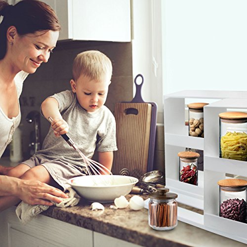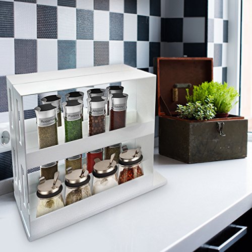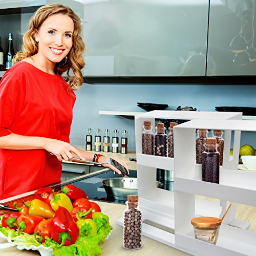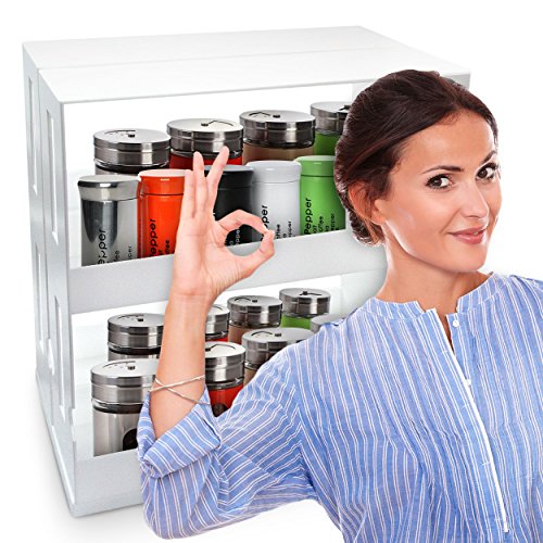 - Feature : Unique, expandable cabinet has 2 sliding trays with shelves to hold all your seasoning containers / Measures only 11.2" L x 5" D x 10" H so it fits conveniently into any kitchen cabinet or shelf / Trays slide in & out along the track & swivel 90 degrees so you can easily view the contents / Made of white, sturdy, lightweight, easy-to-clean, acrylic plastic that looks great in any kitchen / Great storage organizer for bachelor apartments & kitchens with limited counter or cupboard space