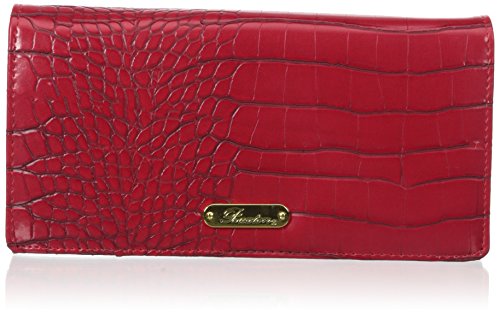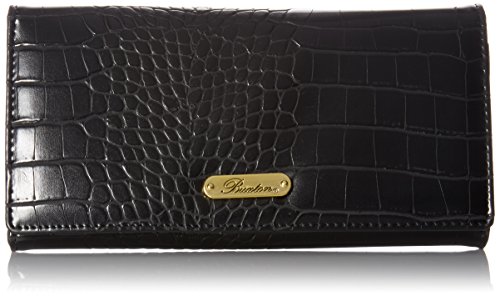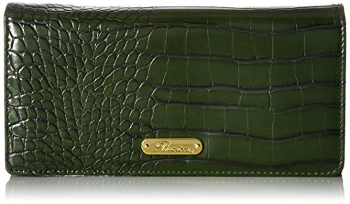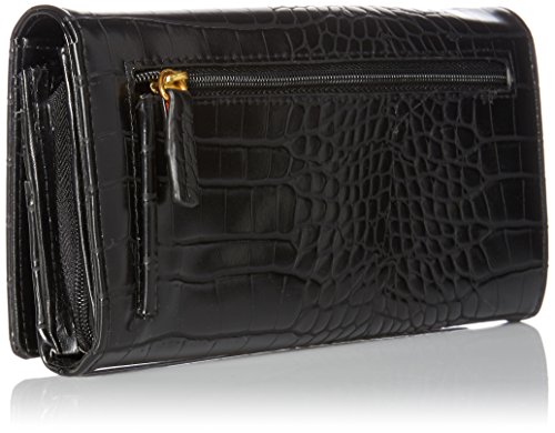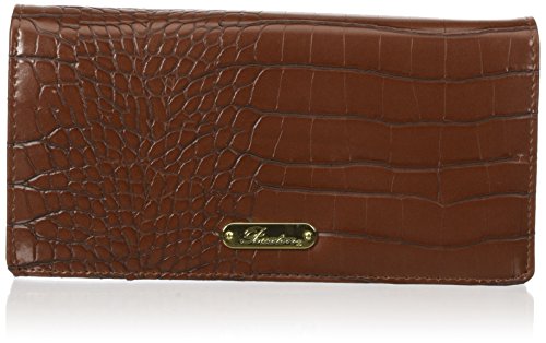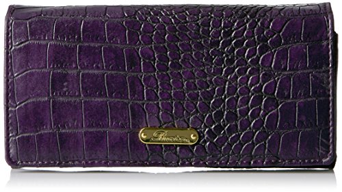 Exotic croco man-made material with gold tone hardware nile exotic expandable clutch features a full flap snap closure and outside zipper coin purse, i.e. Window, multiple credit card slots and multiple slip pockets, interior zipper pocket and gusseted slip pocket.