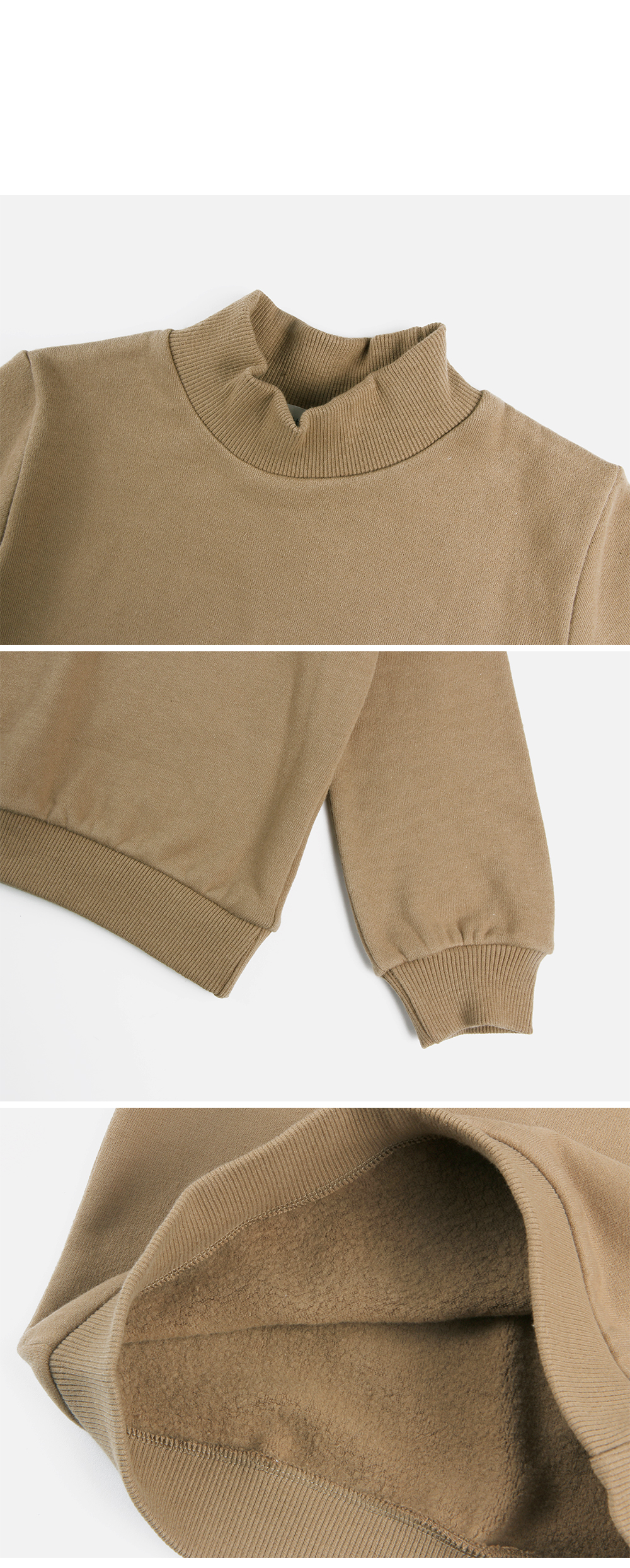 목의 절반까지 올라와 안에 따로 폴라를 입지않아도 보온성을 높여주는 스셔츠-