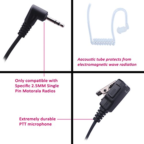 Arama A201M02 Covert Acoustic Tube earpiece headset with PTT and Microphone for 1 PIN 2.5MM Motorola Two-Way Radio T6200C T5800 T7200 T5720(2XPack)