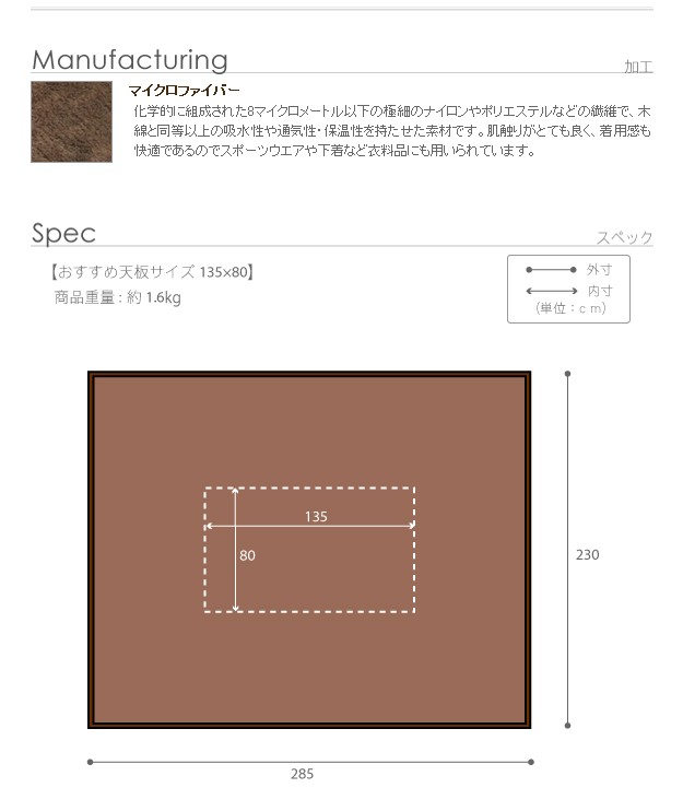 適応こたつサイズ(cm):135x80