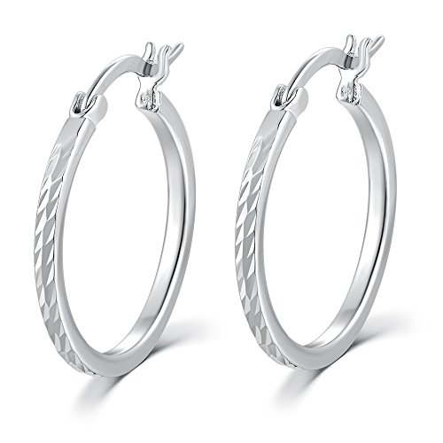 -. Feature : 材質:純銀 スターリングシルバー925 / 直径:2.5cm / 厚さ: 2mm / プレゼント用包装、ギフトボックスに入れてお届けします。 / 純銀シルバー925を示す925の刻印入り、素材と品質の良さも証明されています。 / イヤリングはより輝きがきれいに見えるように、表面に複数のひし形のダイヤモンドカットされています。どの角度からもキラキラ輝きます。動きに合わせて光が揺れ、グラマラスなイメージに!