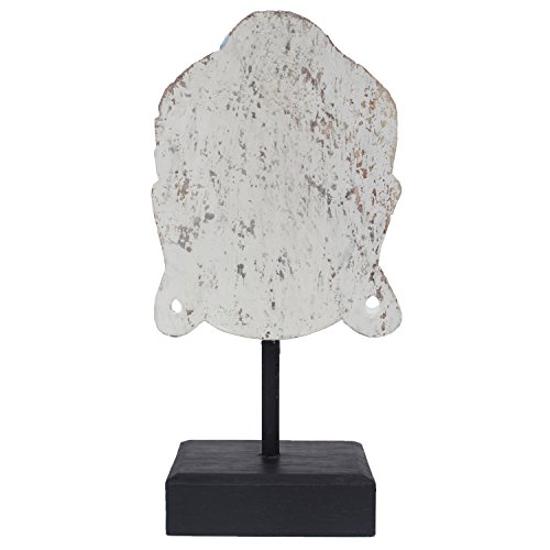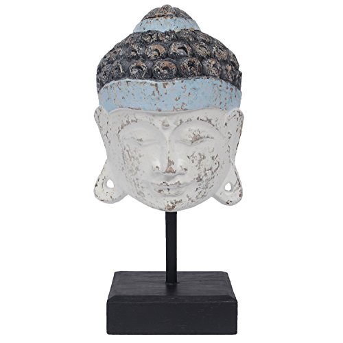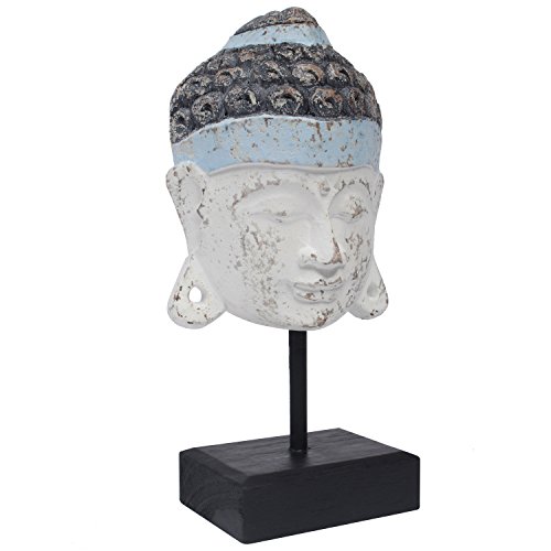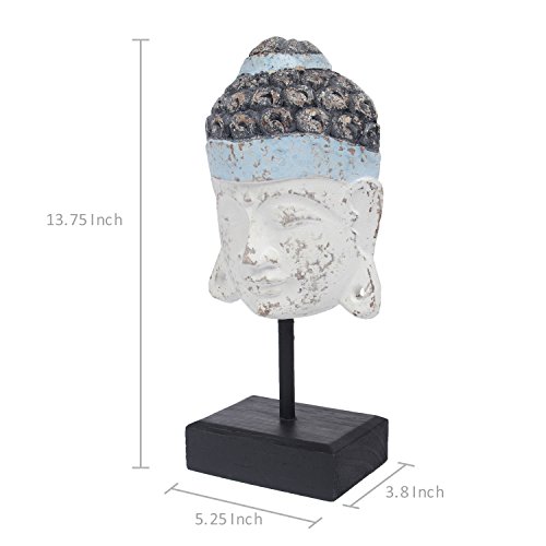 MyGift 14-Inch Peaceful White & Blue Meditating Wooden Buddha Head Statue on Black Stand