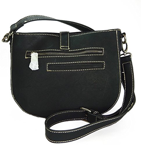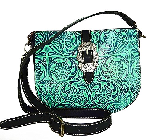 Montana West Small Crossbody w/Floral Tooled Leather Front- Black/TQ