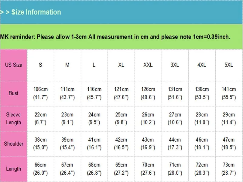 Size Type:Plus Size S M L XL 2XL 3XL 4XL 5XL