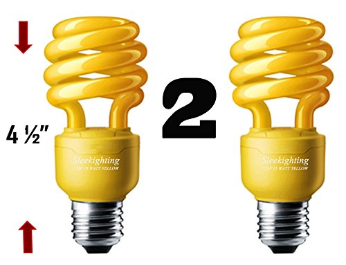 SleekLighting 13 Watt Yellow Bug Light Spiral CFL Light Bulb 120Volt, E26 Medium Base. (Pack of 2)