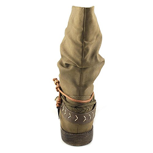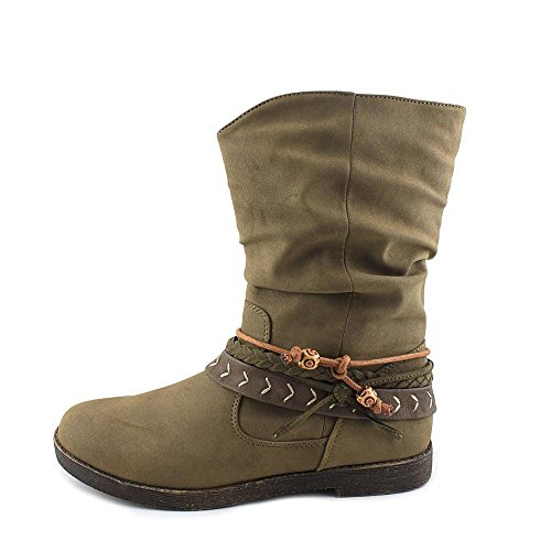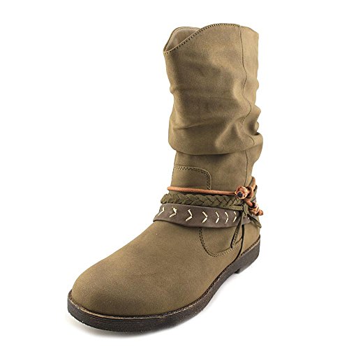 Sugar Root Women Round Toe Leather Brown Mid Calf Boot