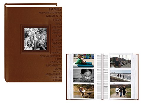 Studio : Pioneer Photo Albums Publisher : Pioneer Photo Albums Binding : Misc. Product Description This embossed word design leatherette cover photo album features a two-tone frame front cover. The album holds 300 4"x6" photos in optically clear pockets with a memo writing area next to each photo. The album is book design bound and photos are displayed three per page. The acid, lignin and PVC-free archival design keeps photos safe over time. The album measures 13" x 9.375" x 1.625". design No. DA-300CASC. 0