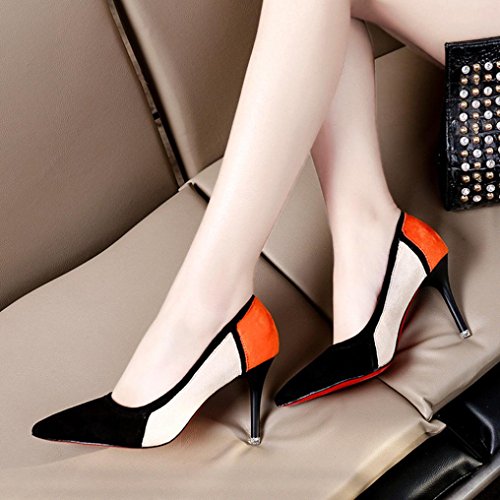 ?:Women's Size Chart(Unit:cm/inch) ?:US:6.5===CN:35===Foot Length:221-225mm/8.70"-8.86"===Foot wide:8.5/3.35" ?:US:7 ===CN:36===Foot Length:226-230mm/8.90"-9.06"===Foot wide:8.5-9cm/3.35"-3.54" ?:US:7.5===CN:37===Foot Length:231-235mm/9.09"-9.25"===Foot wide:9cm/3.54" ?:US:8 ===CN:38===Foot Length:236-240mm/9.29"-9.45"===Foot wide:9-9.5cm/3.54"-3.74" ?:US:8.5===CN:39===Foot Length:241-245mm/9.49"-9.65"===Foot wide:9.5cm/3.74" ?:Feature: ?:Gender: Women ?:Material:Flock ?:Sole Material:Rubber ?:Style: Fashion,Casual ?:Item Type: High-Heeled Shoes ?:Heel Type: Thin Heel ?:Toe Shape: Pointed Toe ?:Shoes Heel High:8.5cm ?:Appropriate Season: Spring,Autumn ?:Occasion: Outdoor ?:Package: 1 Pair Women High-Heeled Shoes ?:Note: ?: ?:Due to lighting effects, monitor's brightness/contrast settings etc,there could be some slight differences in the color tone of the pictures and the actual item ?:If you have problem of the item, please contact us we will do our best to resolve the problem for you ?:We suggest you choose a larger size, if your actual feet length is longer than the?above?feet length 0