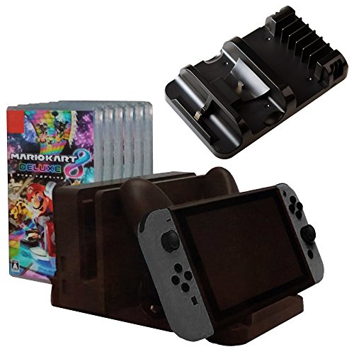 -. Feature : Design for charging Nintendo Switch console and original Pro controller. / Built in 6 game card box storage slots. Joy-Con hand rope included. Charge your Pro controller and Switch console at the same time. / Well design to store your Nintendo Switch console perfectly. Made by durable ABS with metal base. / Input Voltage: Type-C 15.0V 2.6A. Charge Current: 1800mA for console ; 500mA for Pro controller / Third Party made, NOT official item.