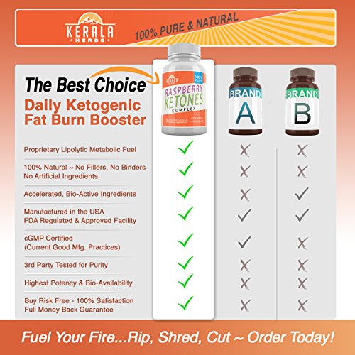 Kerala Herbs 100% PURE Raspberry Ketones Complex Plus Green Coffee, Green Tea Extracts, Resveratrol, African Mango and Pure Fresh Extract of Red Raspberries (Rubus idaeus)