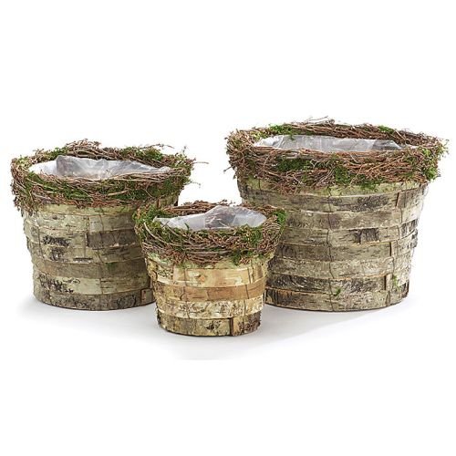 Burton & Burton Pot Cover Birch Bark & Moss Nested Set Of 3