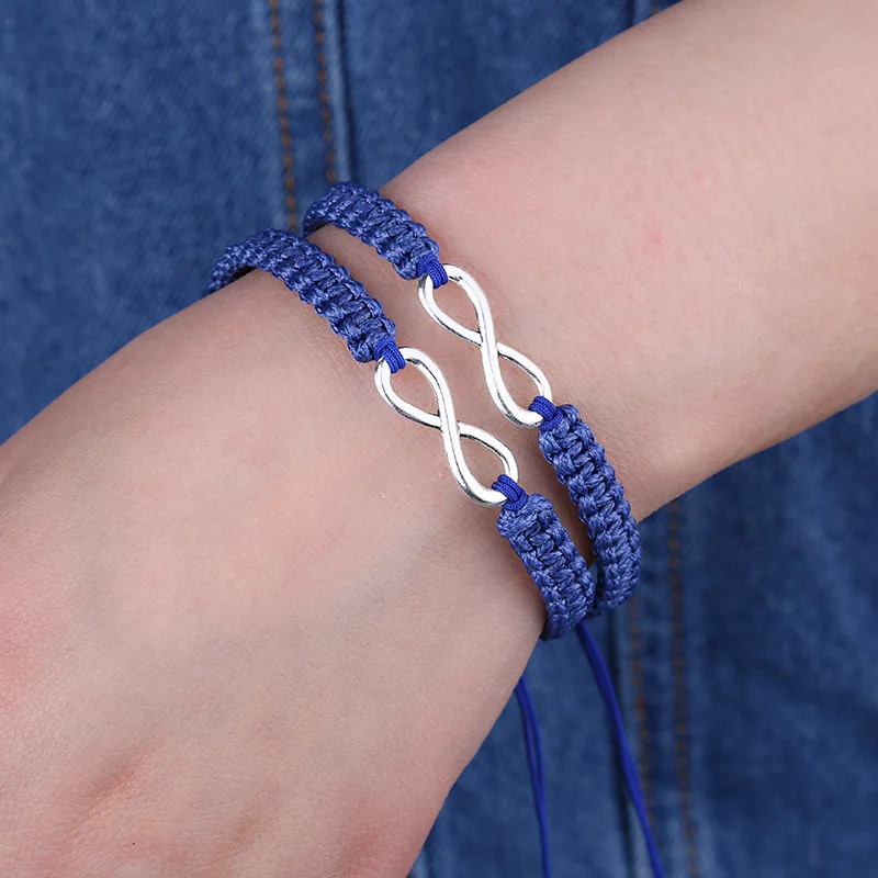 KOMi 2pcs Handmade Woven 8 Words Lucky Friendship Bracelet Set Infinity Love Bracelet Couples Bracelet Set Jewelry B-071