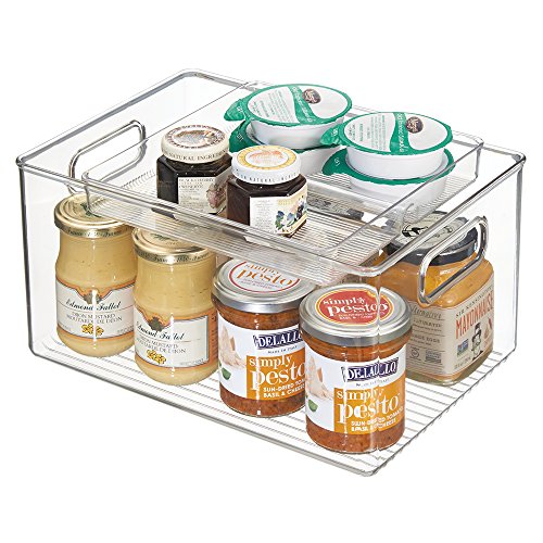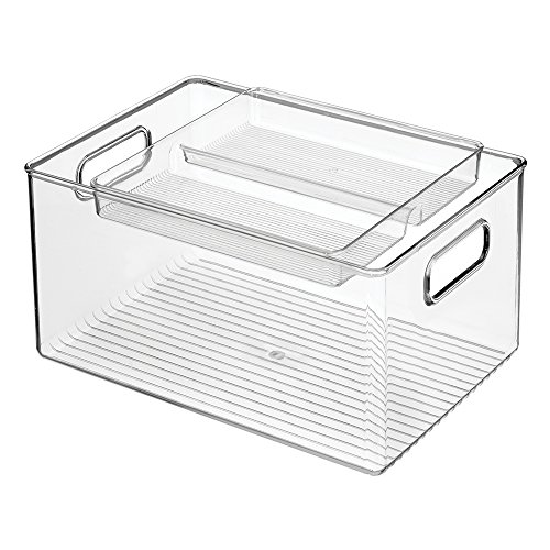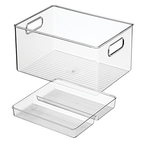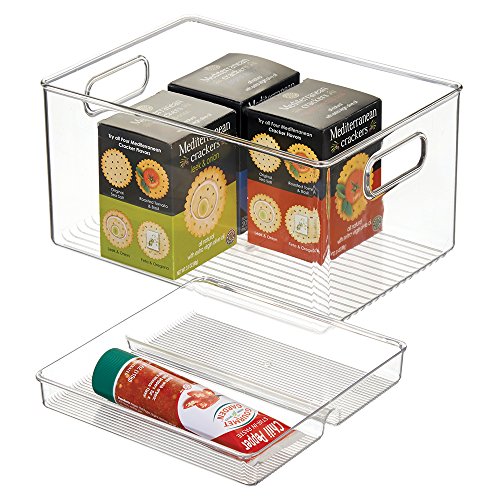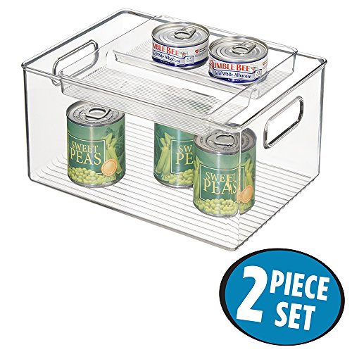 mDesign Stacking Organizer Bin & Tray for Kitchen, Pantry Cabinets - 2 Piece Set, Clear