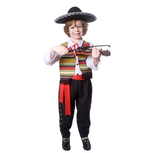 -. Brand : Dress Up America -. Color : Black -. Department : baby-boys -. Feature : ► Product comes complete with: Shirt, Pants, Vest and Sash / ► Silver and black side strip decorate the pants / ► Made with 100% Polyester Featuring: resistant to most chemicals, stretching and shrinking, wrinkle resistant, mildew and abrasion resistant / ► Multi colored striped vest / ► Please note shoes, hat, socks, and instrument are not included -. Label : Dress-up America -. Manufacturer : Dress-up America -. Model : 483 -. MPN : 483-L -. NumberOfItems : 1 -. PackageQuantity : 1 -. PartNumber : 483-L -. ProductGroup : Apparel -. ProductTypeName : BABY_COSTUME -. Publisher : Dress-up America -. Size : Large -. SKU : WC23150 -. Studio : Dress-up America -. Title : Mexican Mariachi Kids Costume By Dress Up America