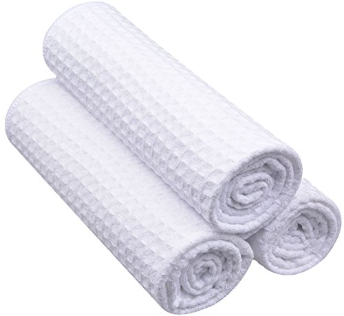 Sinland Microfiber Waffle Weave Kitchen Towels Drying Cloth 3 Pack 16inch X 24inch White E