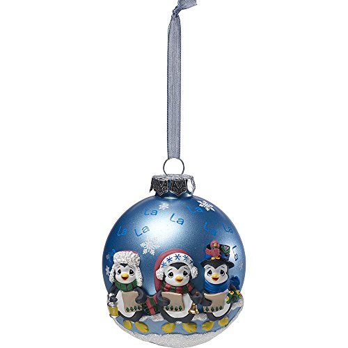 [Product Information]- A trio of caroling penguins graces the front of this ball-shaped ornament while a festive evergreen adorns the back. The phrase “La La La” inspires fond memories of holiday sing-alongs