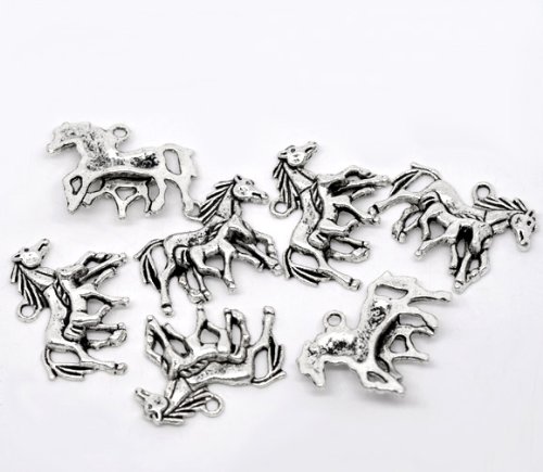 Horse Charm Pendants Silver Tone, Equestrian Jewelry Making DIY (20 of each)