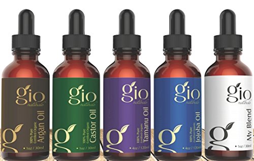 -. Title : Gio Naturals Organic Carrier Oil Gift Set, Castor, Jojoba, Tamanu, and Argan Oil, For Hair, Face, Skin, Body and Nails, Blend Bottle Included