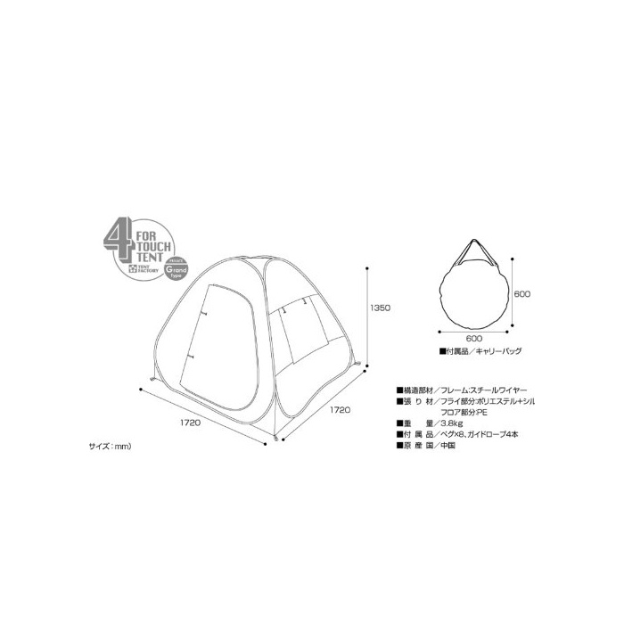 원본상품명: テントファクトリ? サンシェ?ド フォ?タッチプライベ?トテント グランドタイプ (全面締め切り着替え可能タイプ) TF-TP4G