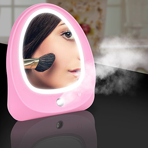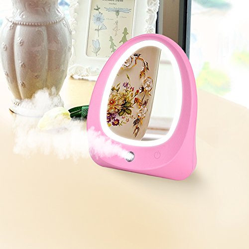 Vanity Makeup Mirror 6.7 inch LED Natural Daylight Explosion Proof High Definition Mirror with Cool Mist Spray Humidifier and Touch Screen USB Charging functions(Pink)-QINUKER