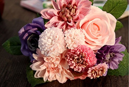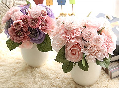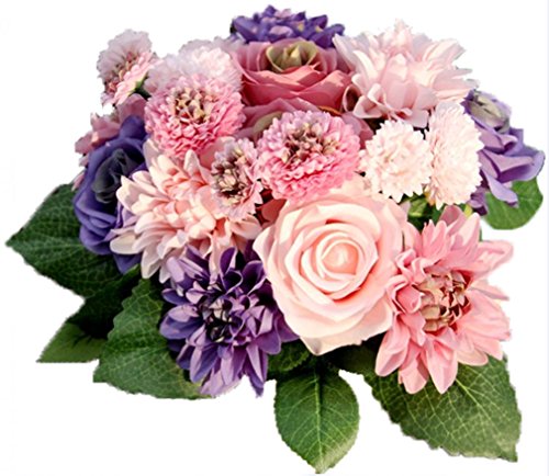 Felice Arts 10 Heads Artificial Flowers Rose Dahlia Daisy Flower Bridal Wedding Bouquet Flowers Home Arangement Flowers,Wedding Party Office Hotel Garden Floral Decor Pink&Purple