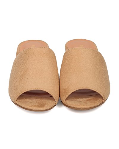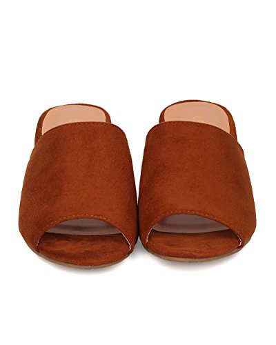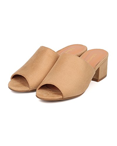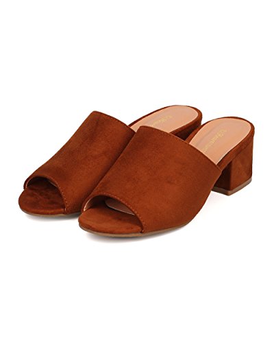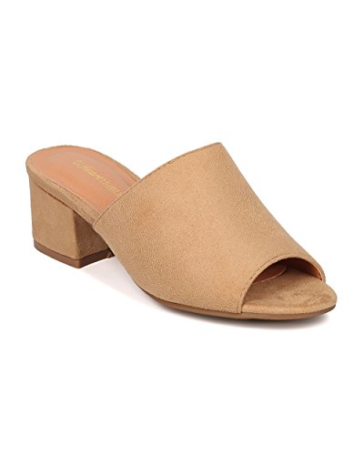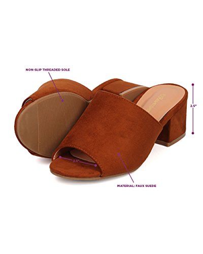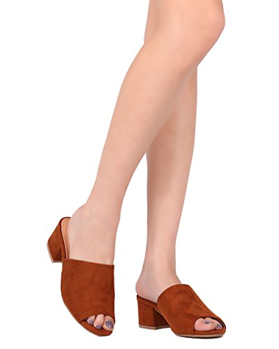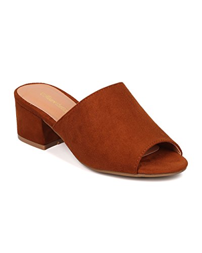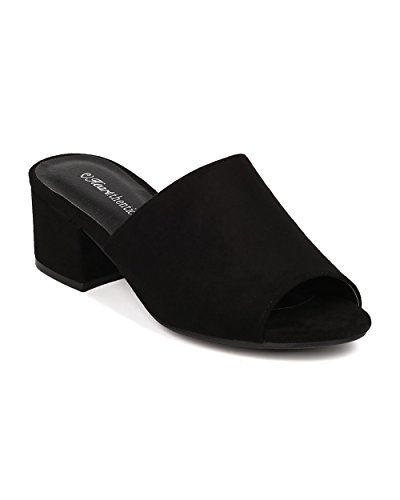 Women Chunky Heel Mule - Peep Toe Block Heel Slide - Open Toe Heel Sandal - Gladys-10 By Indulge
