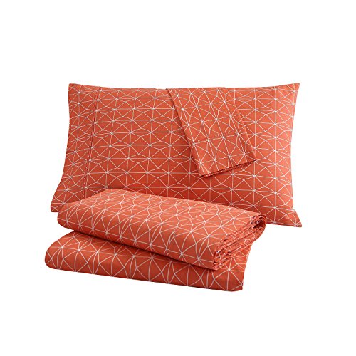 Clairebella Geometric Printed 100-percent Cotton 3 or 4-piece Sheet Set Multi, Orange Twin