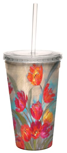 Tree-Free Greetings cc33723 Ruby Flush Tulips by Nel Whatmore Artful Traveler Double-Walled Cool Cup with Reusable Straw, 16-Ounce