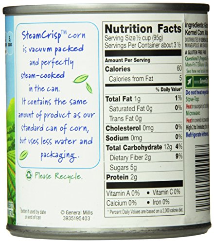 Green Giant Steam Crisp Whole Corn Niblets, No Salt Added, 11 Ounce (Pack of 12)