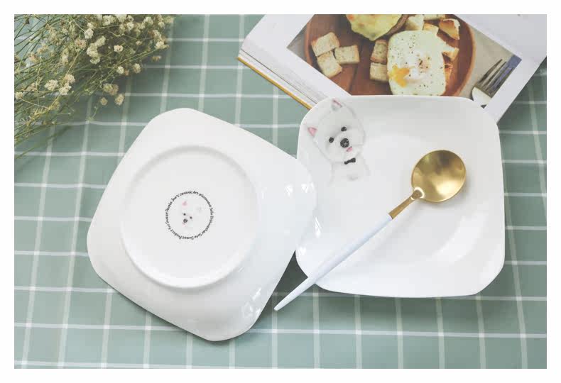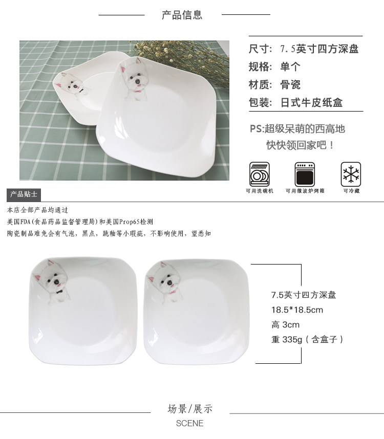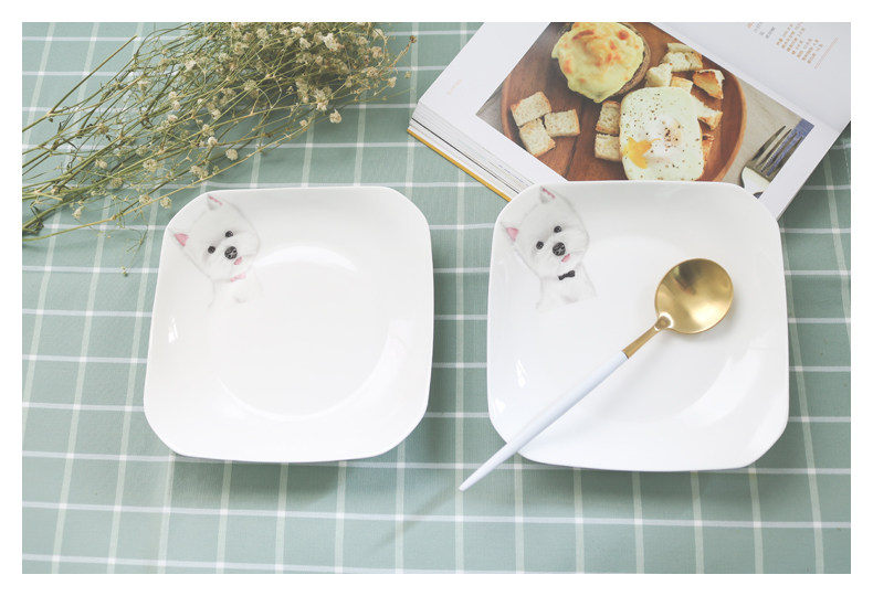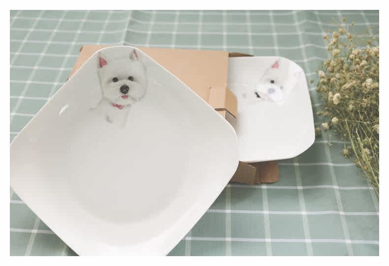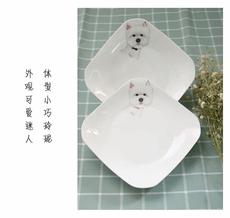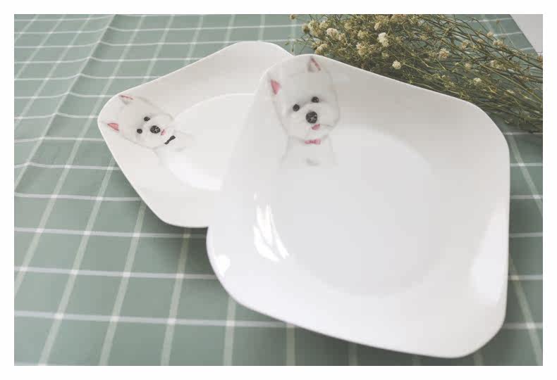 西高地系列方盘子陶瓷创意家用菜盘四方盘骨瓷正方形卡通狗狗盘子