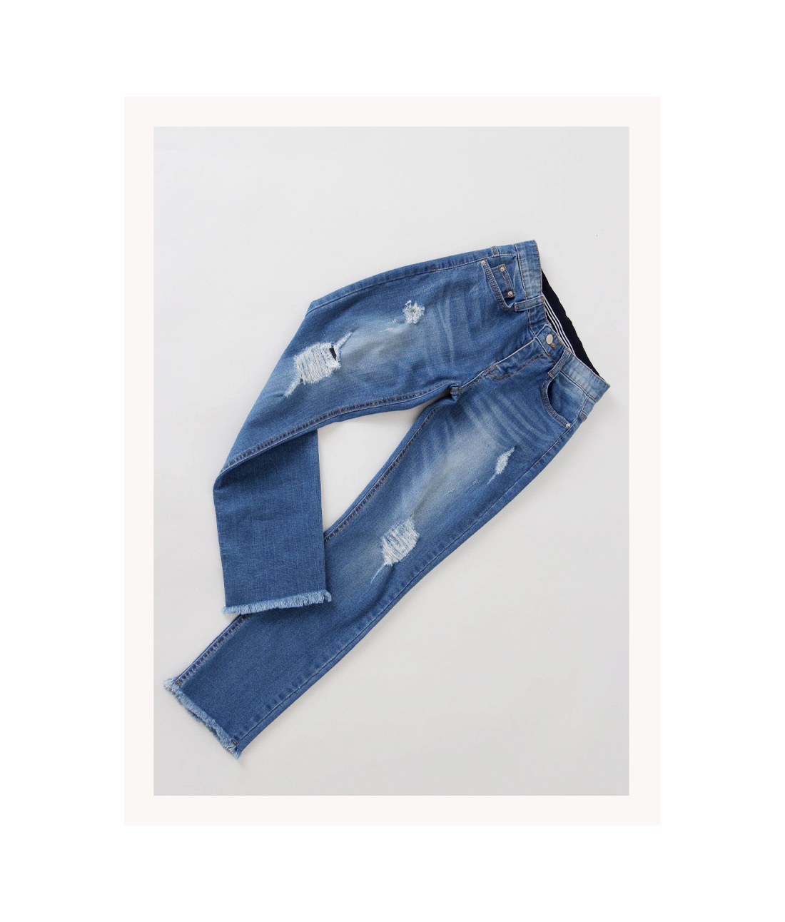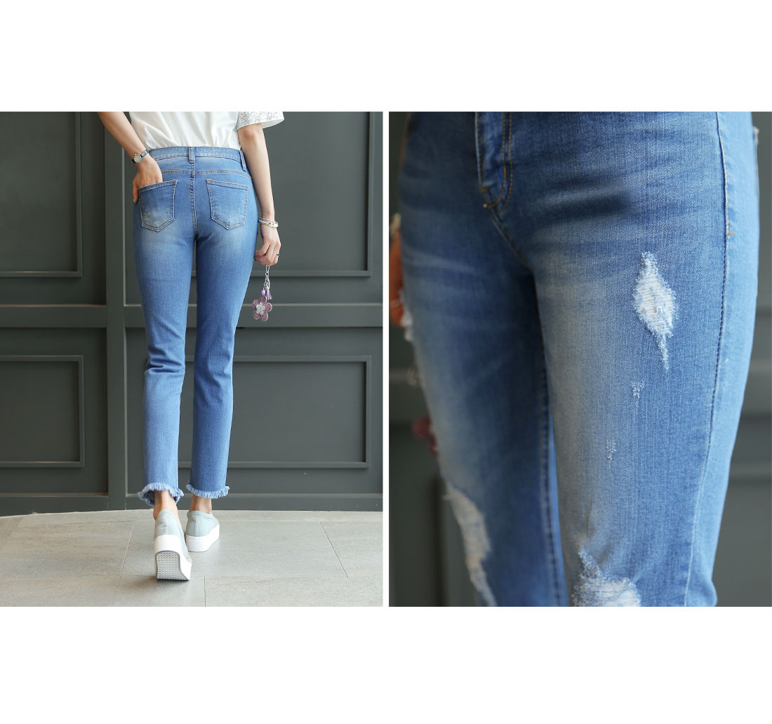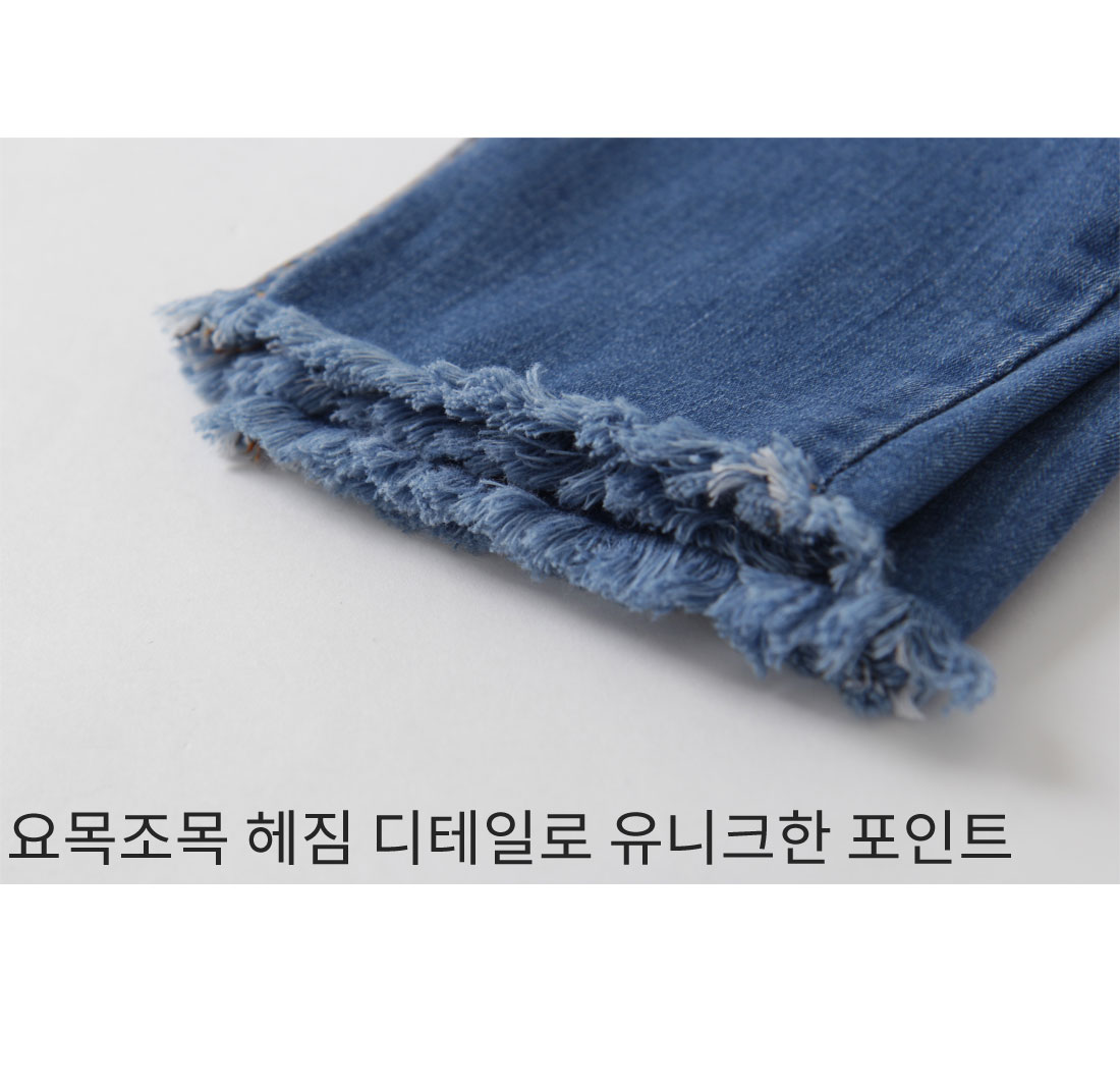 시크릿 속밴딩으로 편안한 착용감과 동시에 스타일 UP!요목조목 헤짐 디테일로 유니크한 포인트까지 DETAIL스타일리시한 매력이 돋보이는 팬츠 소개해드릴게요우선 지퍼와 버튼 클로징으로 안정감 있는 착용감을 드리구요여기에 속밴딩이 마련되어져 있어 스타일은 살려주面서편안하게 입을 수 있도록 해준 기특한 아이예요산뜻함이 느껴지는 워싱과 요목조목 헤짐 디테일로 멋스러움이 물~씬!밑단에는 과하지 않은 프린징 디테일로 마무리해주었어요허벅지라인은 핏하게 잡아주面서 무릎아래로 여유있게 떨어지는일자핏으로 조금 더 부담없이 착용하시기 좋답니다게다가 伸縮性까지 좋아서 활동량이 많은날에도 편안하게 즐겨주실 수 있을거예요 SIZE-TIP사이즈는 S,M,L까지 나와있구요구매하시기 전 상세사이즈표를 꼭 확인해주세요 COORDINATION프린팅 티셔츠와 위트있게 매치해도 잘 어울리구요후드, 맨투맨과 스포티하게 즐겨도 정말 멋스러워요