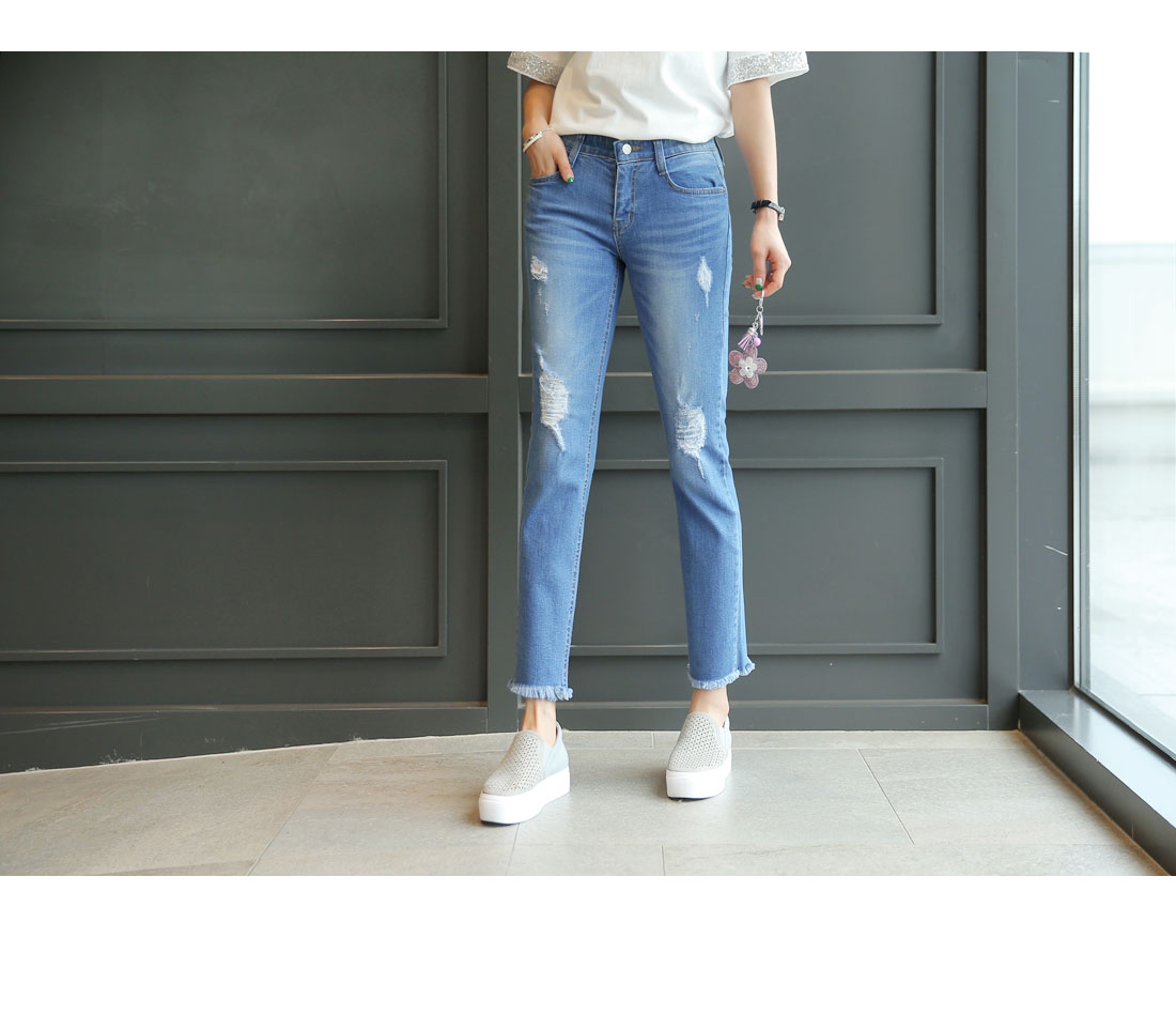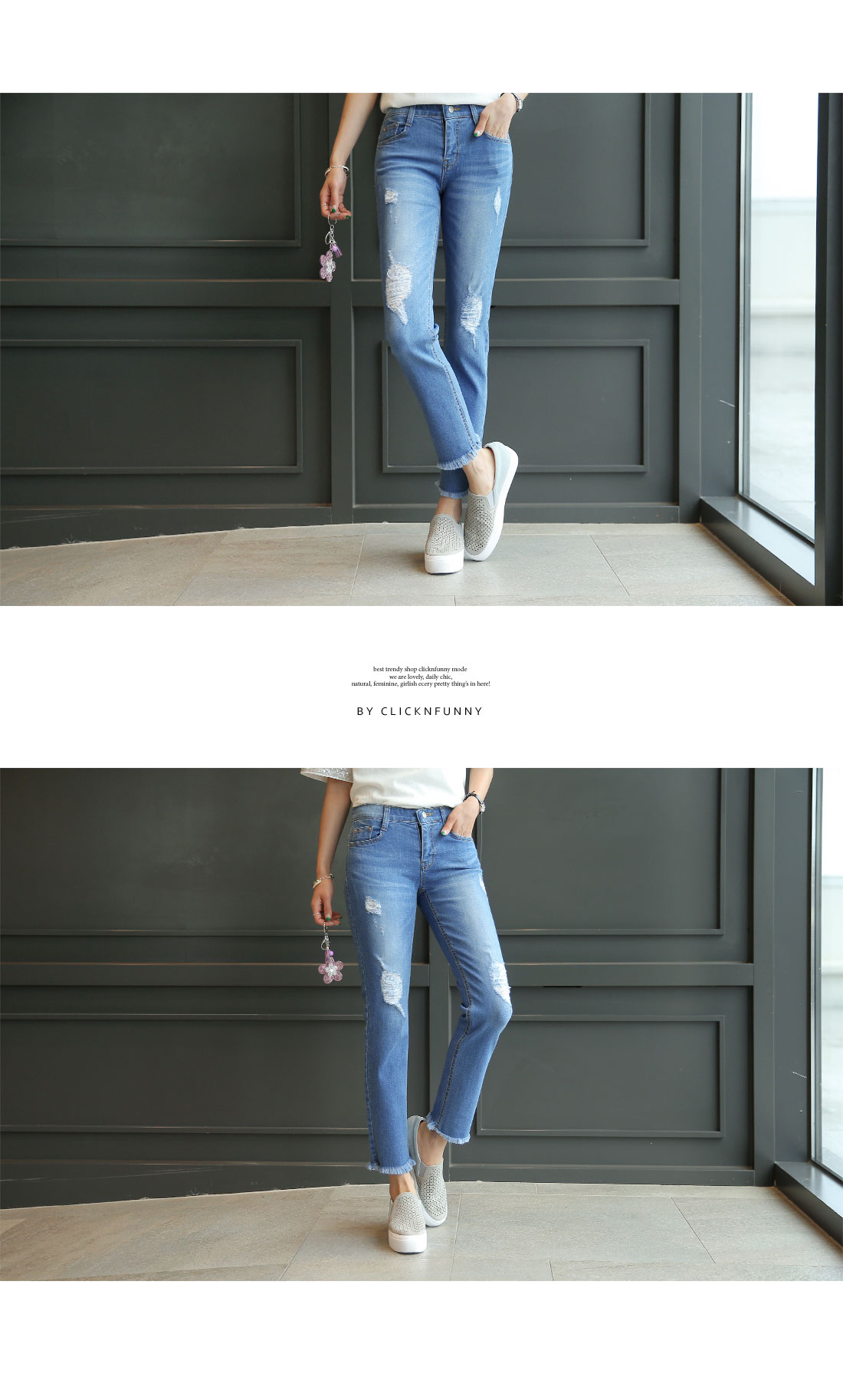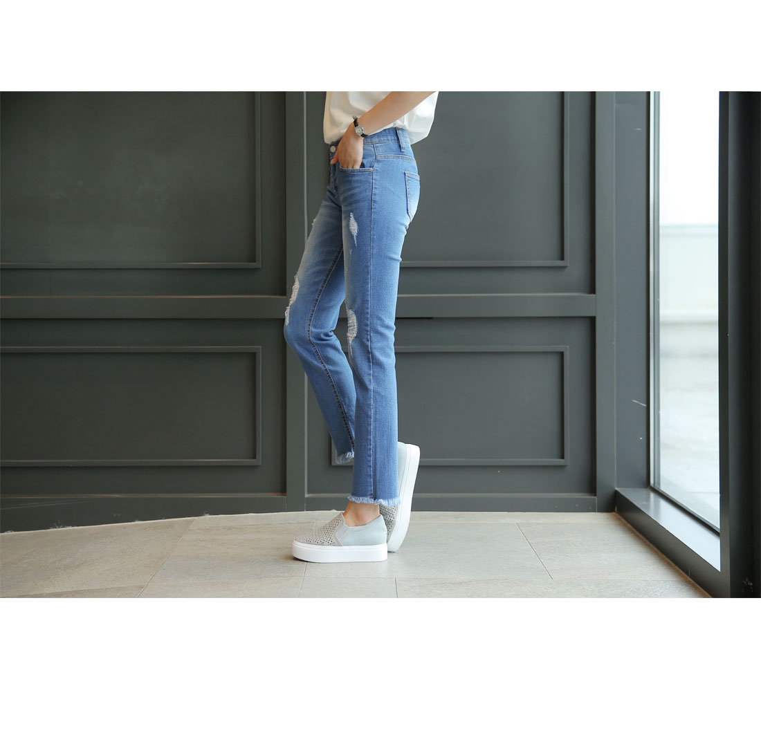시크릿 속밴딩으로 편안한 착용감과 동시에 스타일 UP!요목조목 헤짐 디테일로 유니크한 포인트까지 DETAIL스타일리시한 매력이 돋보이는 팬츠 소개해드릴게요우선 지퍼와 버튼 클로징으로 안정감 있는 착용감을 드리구요여기에 속밴딩이 마련되어져 있어 스타일은 살려주面서편안하게 입을 수 있도록 해준 기특한 아이예요산뜻함이 느껴지는 워싱과 요목조목 헤짐 디테일로 멋스러움이 물~씬!밑단에는 과하지 않은 프린징 디테일로 마무리해주었어요허벅지라인은 핏하게 잡아주面서 무릎아래로 여유있게 떨어지는일자핏으로 조금 더 부담없이 착용하시기 좋답니다게다가 伸縮性까지 좋아서 활동량이 많은날에도 편안하게 즐겨주실 수 있을거예요 SIZE-TIP사이즈는 S,M,L까지 나와있구요구매하시기 전 상세사이즈표를 꼭 확인해주세요 COORDINATION프린팅 티셔츠와 위트있게 매치해도 잘 어울리구요후드, 맨투맨과 스포티하게 즐겨도 정말 멋스러워요
