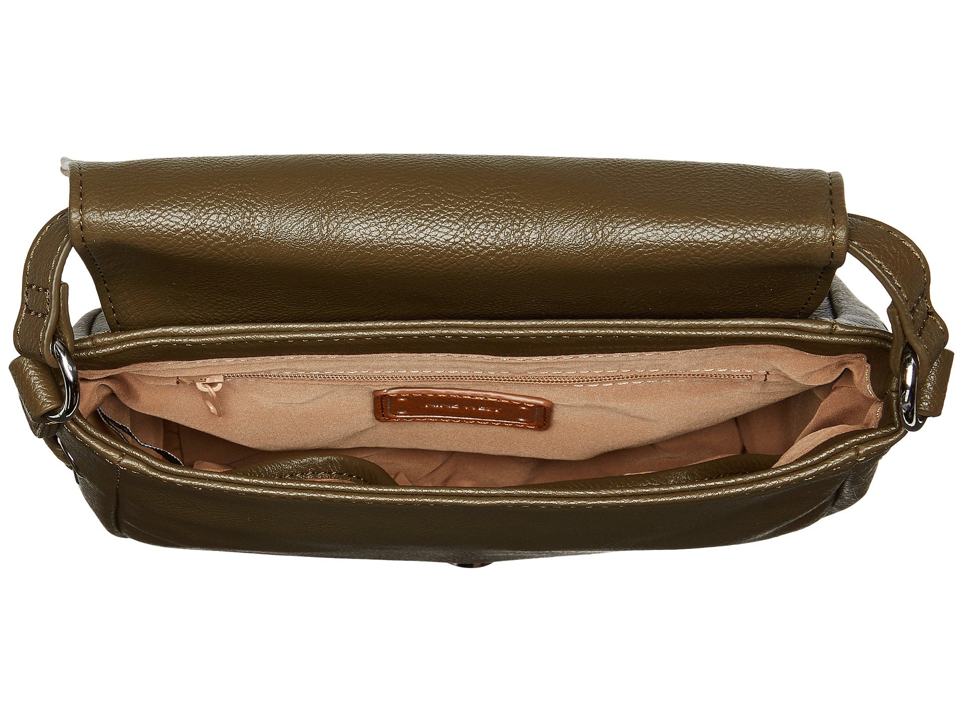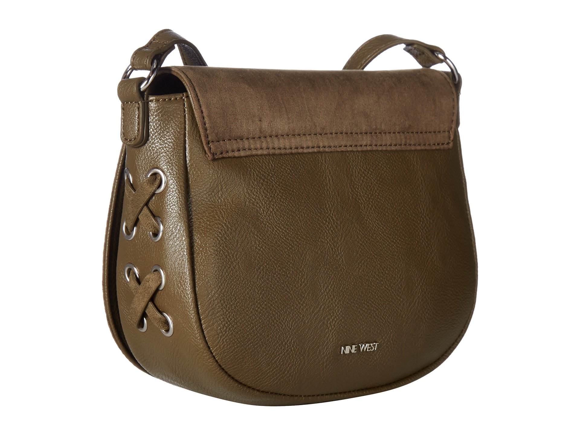 | Product Information SKU: #9038619Unlock the mystery of style with the chic and sleek Nine West? Ring Decoder Crossbody.Man-made construction with faux-leather detailing and ring accent on flap.Adjustable crossbody strap.Flap closure with magnetic snap.Lined interior includes two slip pockets and a zippered pocket.Imported.This product may have a manufacturer's warranty. Please visit the manufacturer's website or contact us at warranty@support.zappos.com for full manufacturer warranty details.Measurements: Bottom Width: 7 1?2 in Depth: 2 1?2 in Height: 7 in Strap Length: 51 in Strap Drop: 25 in Weight: 14.6 oz |