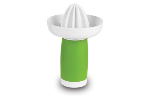 - Integrated straining cup filters unwanted seeds and pulp and directs fresh squeezed juice through handle and into prep bowl