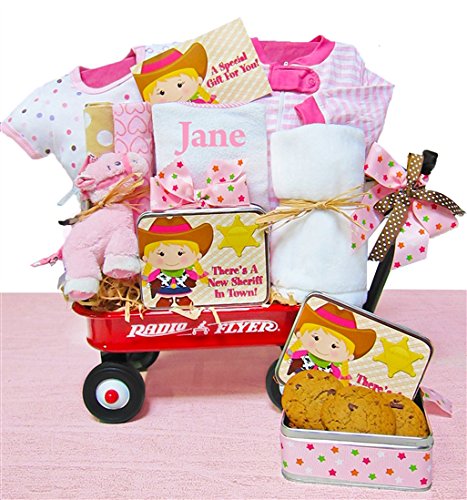 -. Title : Little Cowgirl | Personalized Baby Girl Gift Basket in a Miniature Radio Flyer Wagon