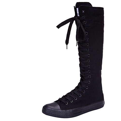 Binding : Apparel Product Description Punk-style knee high boots, there are both lace and zip for putting on and taking off. Girls cool fashion school shoes boots. The good choice for dance boots. Classic pure black and white color will never get outmoded. The upper height is about 36cm and the platform height is 3cm. 0
