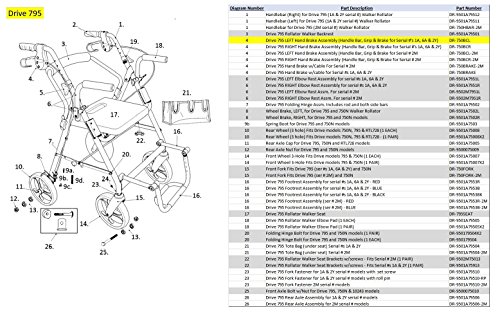 Studio : Drive Publisher : Drive Binding : Health and Beauty Product Description Part #4 - Left Hand Brake Assy. 1A 2Y ser #'s Replacement Parts for Drive Duet Rollator/Transport Chair Model 795 - Please check Serial Number of unit before ordering part. Some Part # change for different Serial Numbers and Colors. 3 versions of serial number (1A 2Y 2M). 3 Colors - Red, Blue or Black 0