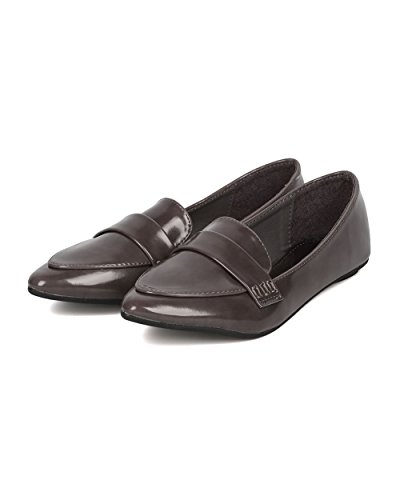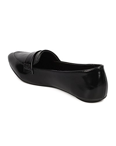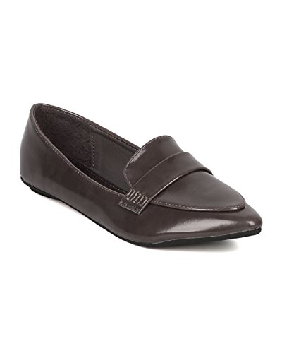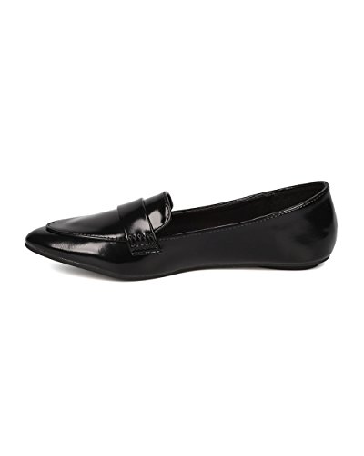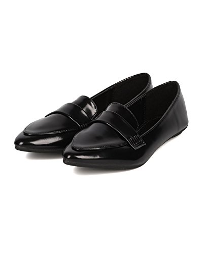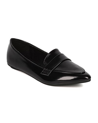 Product Description These polished leatherette loafers are made with a pointy toe, stitch accents and a flat heel. Also made with a lightly padded insole and easy to slip on design. 0