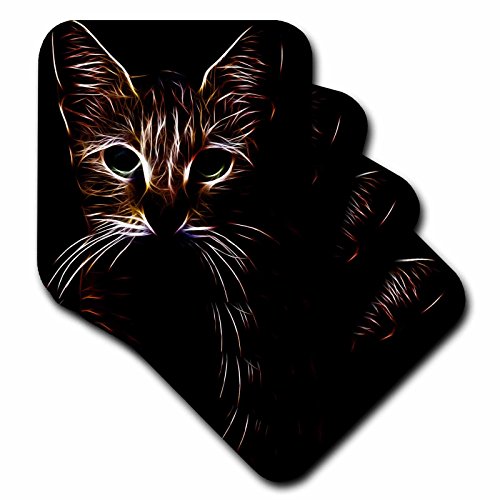 3dRose Tabby Cat Face Pet Lovers Glowing Neon Light Art - Ceramic Tile Coasters, set of 4 (cst_155250_3)