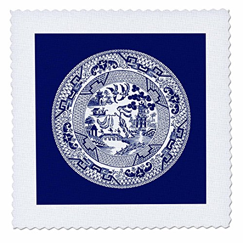 3dRose Willow Pattern In Delft Blue & White - Quilt Square, 25 by 25-Inch (qs_220439_10)