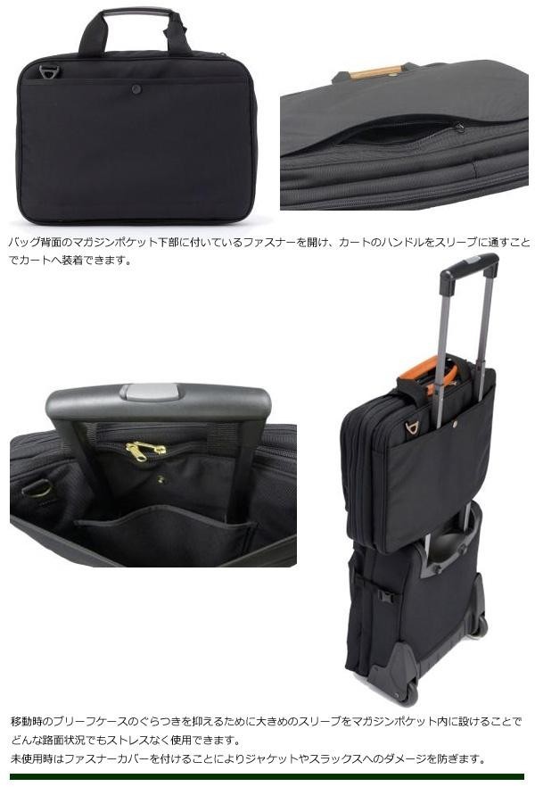 また、バッグ背面側には出し入れが便利なマガジンポケット、さらにキャリーカートのハンドルに装着できるようスリーブも装備。スーツを傷めないようにファスナーにはカバーを付け、カートのハンドルに通した際にバッグを安定させるために大きめのスリーブをマガジンポケットの中に配置してあります。