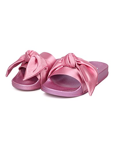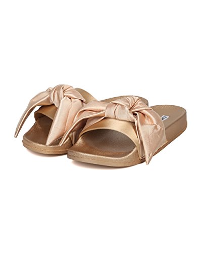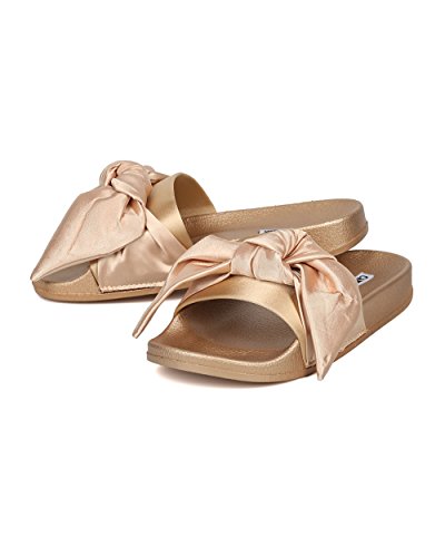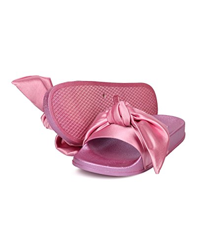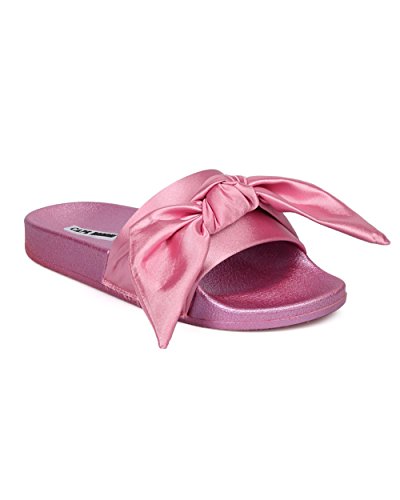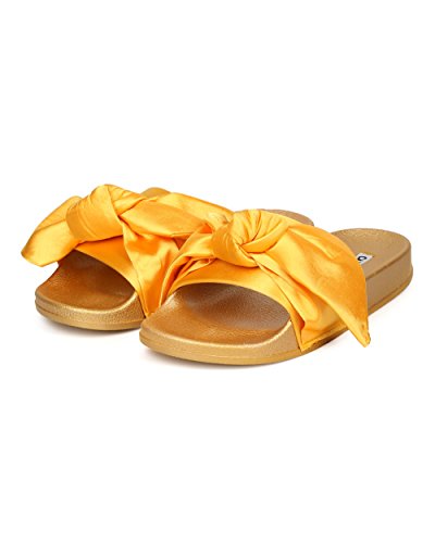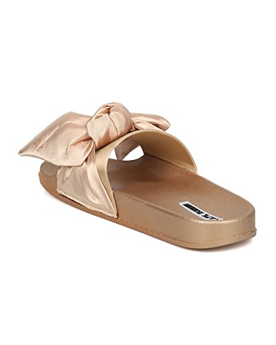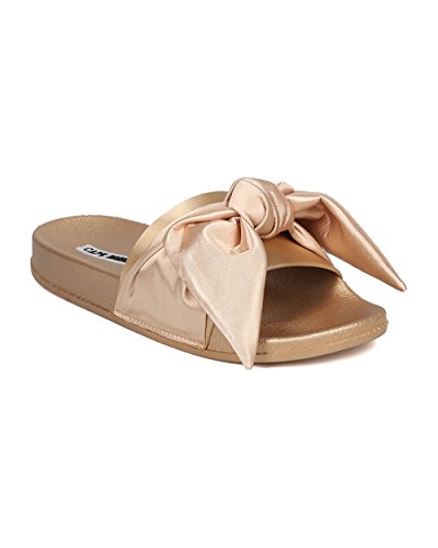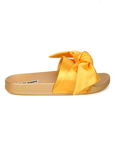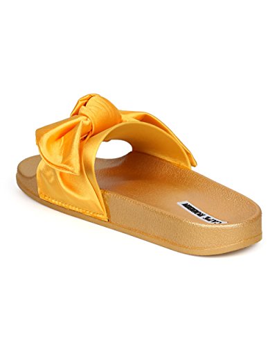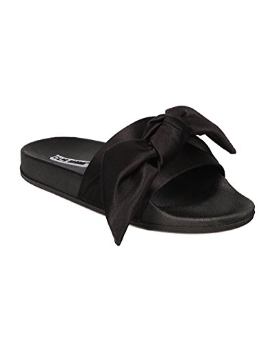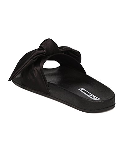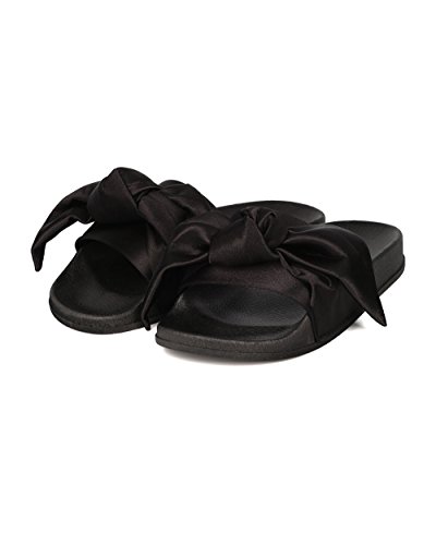 Women Satin Bow Tie Flat Sandal - Casual, Lounge, Everyday - Open Toe Slide - GF82 By Cape Robbin