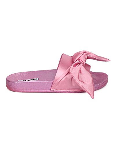 Product Description These casual sandals are made with a satin upper, single band at vamp and bow tie detail. Also made with a molded footbed and easy to slip on design. 0