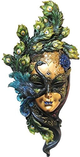 13.63 Inch Peacock Mask Decorative Wall Plaque, Green and Purple