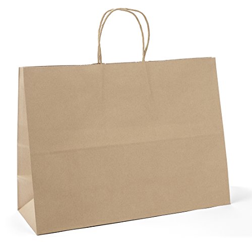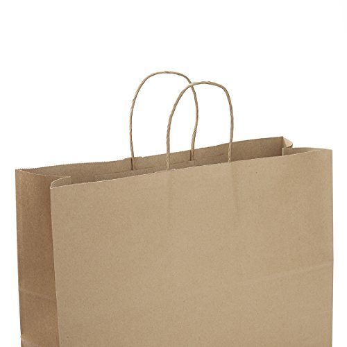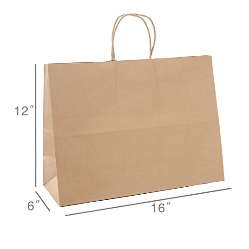 Halulu 50 Pcs 16x6x12" Kraft Brown Paper Handle Shopping Gift Merchandise Carry Retail Bags