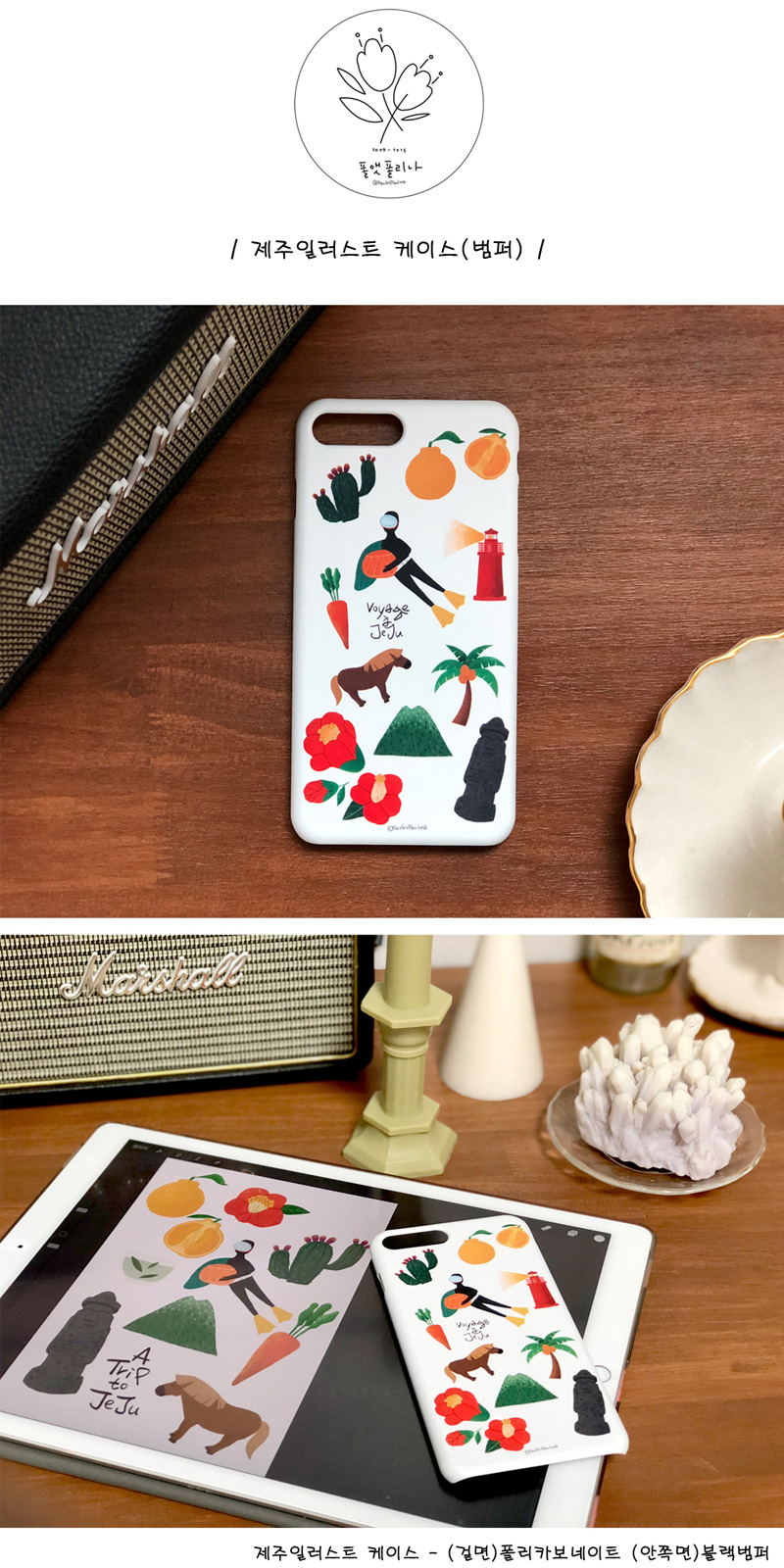 귀여운 제주상징들이 일러스트로 가득담긴 케이스입니다.