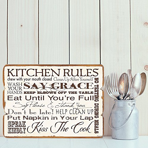 MODE HOME 15.75"X11.81" Wooden Wall Kitchen Signs Wall Decor Signs(Kitchen Rules)