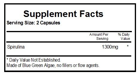 Studio : PureControl Supplements Publisher : PureControl Supplements Binding : Health and Beauty Product Description Spirulina is a 100% natural all-in-one super nutrient that is derived from a an algae which grows in fresh water ponds. The name Spirulina is derived from its spiral-shape, which can be seen under a microscope. Spirulina is 65 to 71 percent complete protein, with all essential amino acids in perfect balance. In comparison, beef is only 22 percent protein. Spirulina is being developed as the "food of the future" because of its amazing ability to synthesize high-quality concentrated food more efficiently than any other algae Since the ancient times, it has been mankind's most powerful source of nutrition. Spirulina provides protein, iron, vitamins, minerals and most of the essential micro-nutrients, many of which you may miss in your diet due to irregular eating habits, hectic lifestyle or lack of proper dietary knowledge. INGREDIENTS: Spirulina 1300 mg DIRECTIONS: Take 2 capsules with meals as a dietary supplement. 0